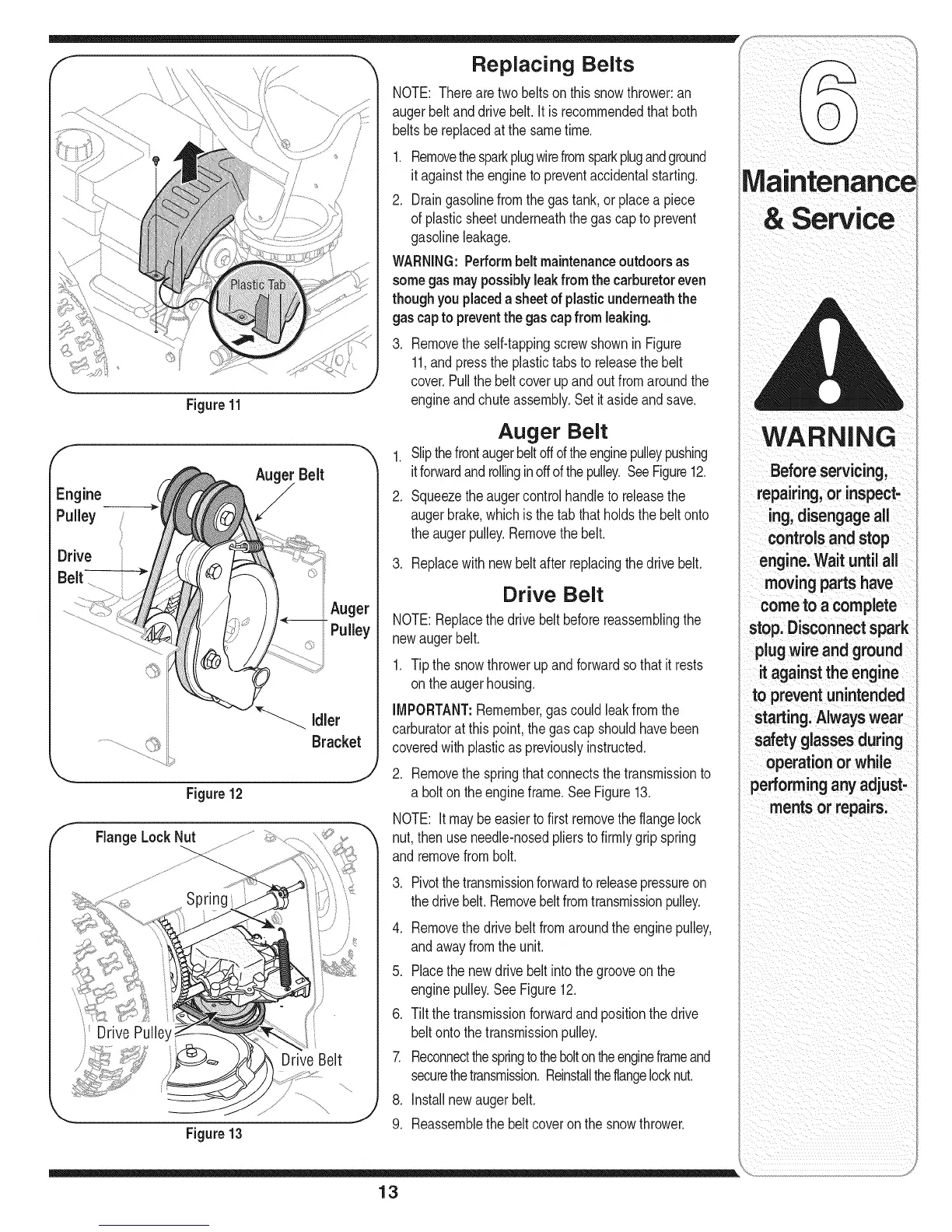 augerbeltanddrivebelt.It is recommendedthat both