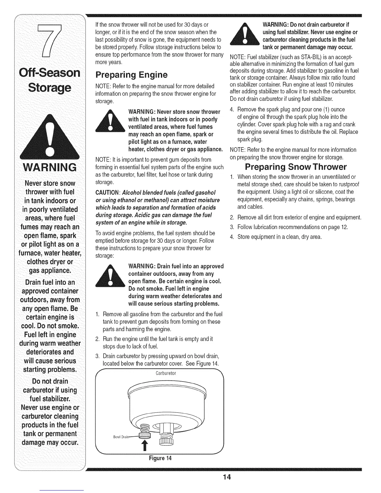 1. Whenstoringthesnowthrowerinan unventilatedor
