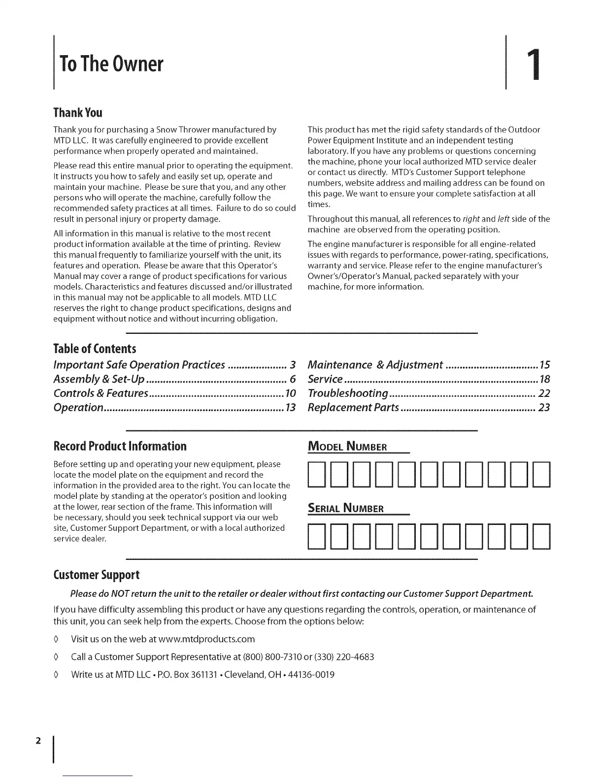 0 Write us at MTD LLC • RO. Box 361131 • Cleveland, OH • 44136-0019