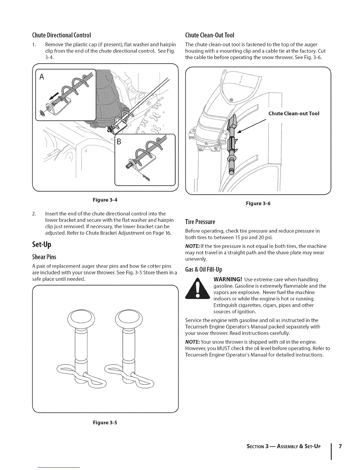 are included with your snow thrower. See Fig. 3-5 Store them in a