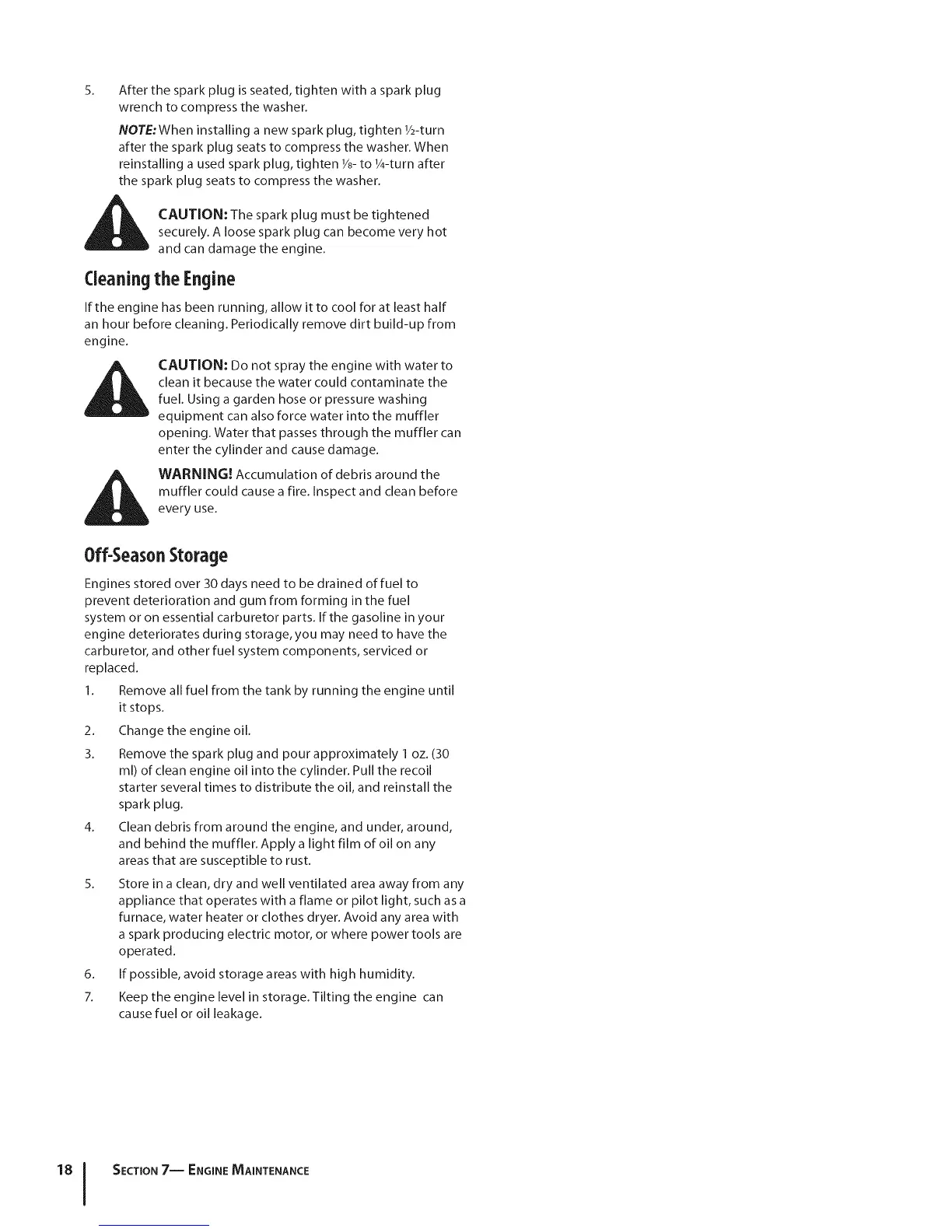 i_li,lb CAUTION: The spark plug must be tightenedsecurely. A loose spark plug can become very hot
