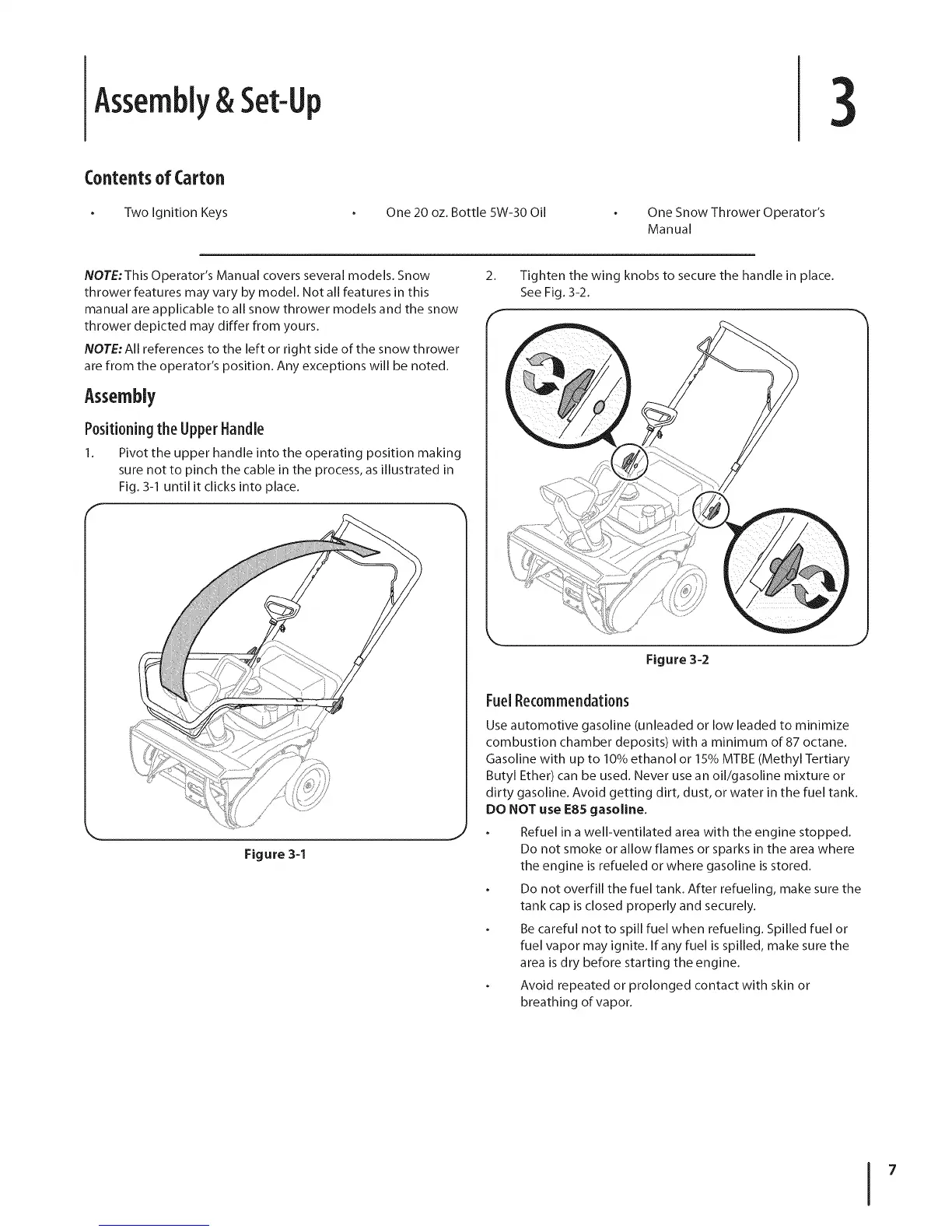 NOTE:This Operator's Manual covers several models. Snow