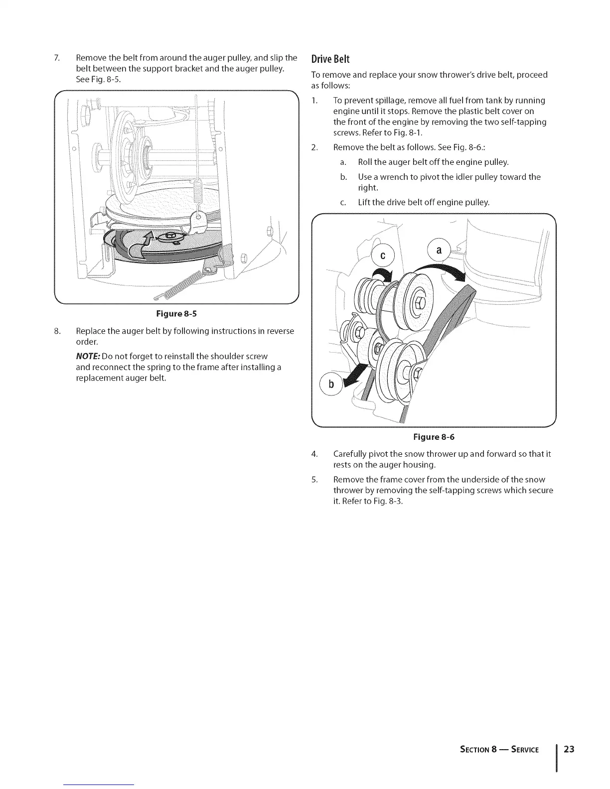 7. Drive BeltRemove the belt from around the auger pulley, and slip the