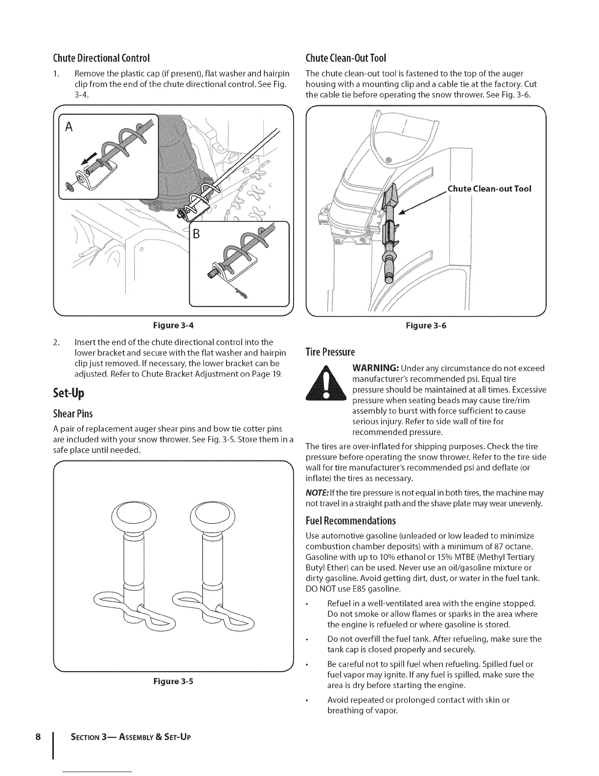 are included with your snow thrower. See Fig. 3-5. Store them in a