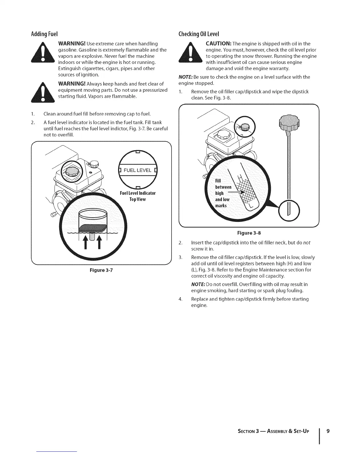 until fuel reaches the fuel level indictor, Fig. 3-7. Be careful