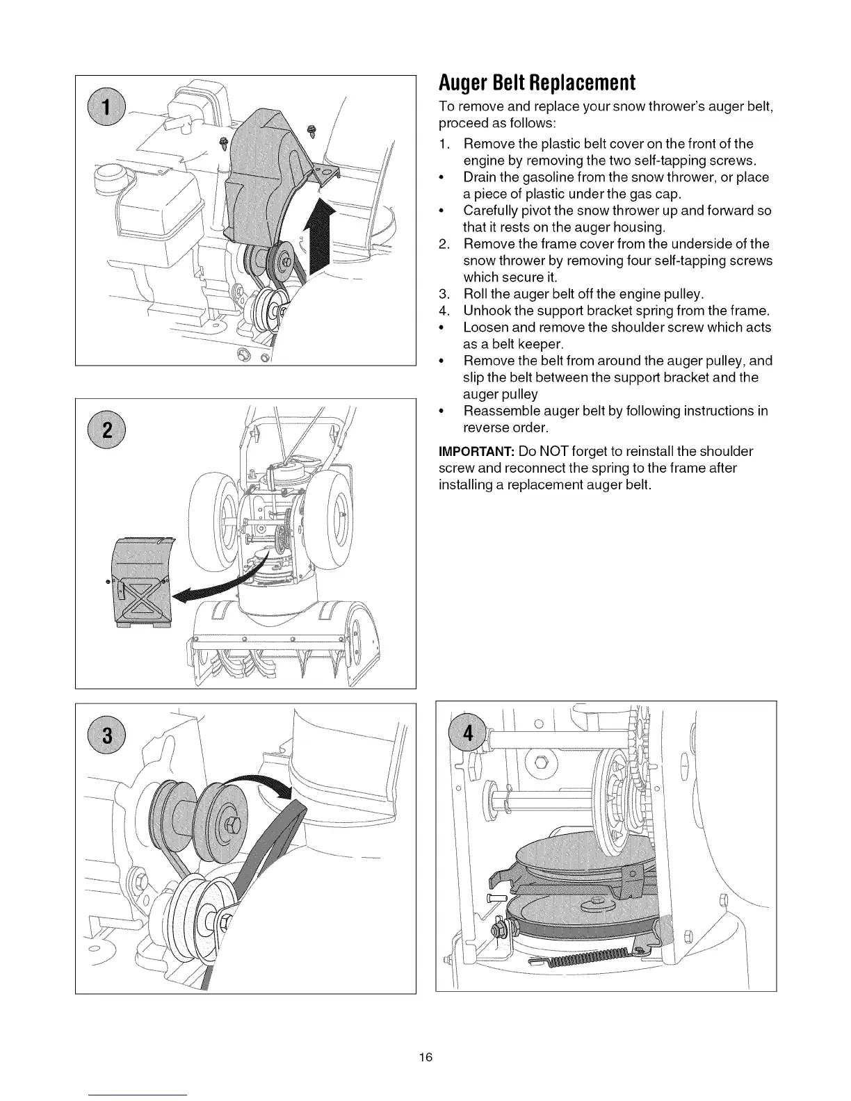 • Reassemble auger belt by following instructions in