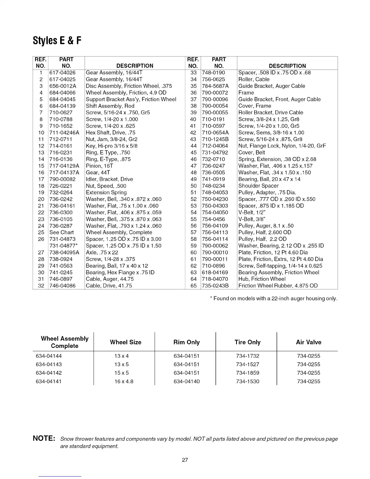 NOTE: Snow thrower features and components vary by model. NOT all parts listed above and pictured on the previous page