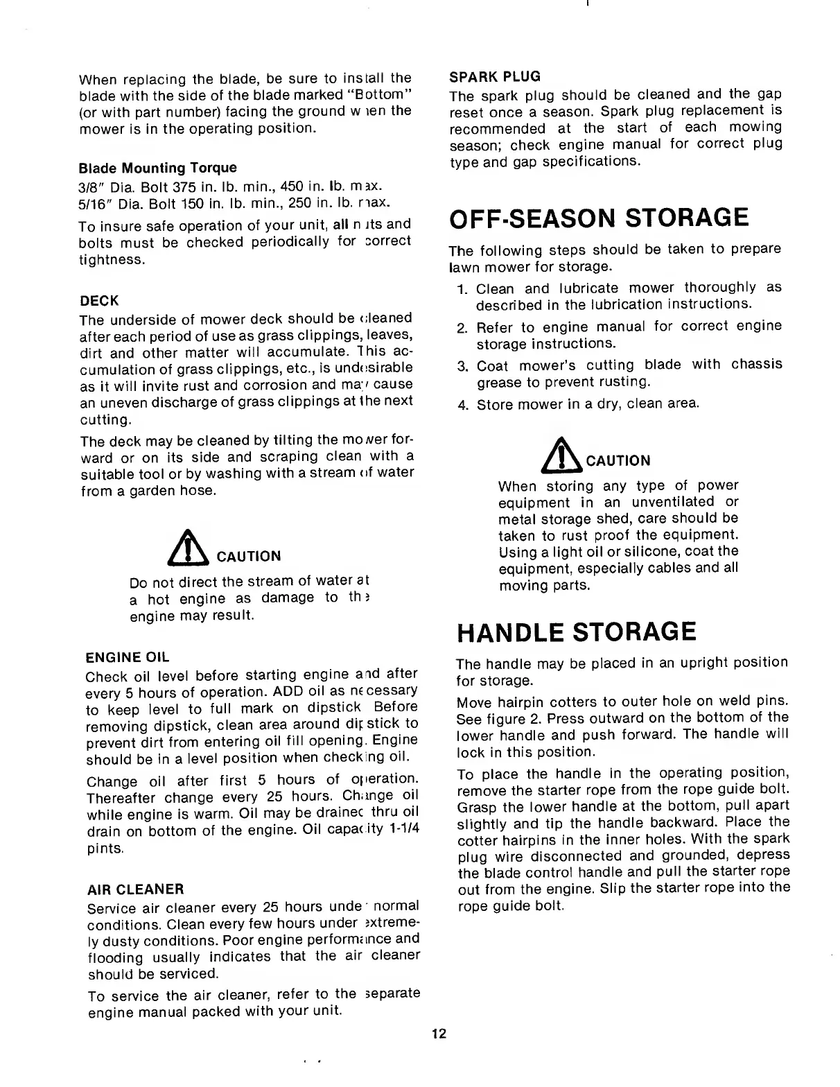 MTD 330 - Engine Oil; Air Cleaner; Spark Plug; Off-Season Storage