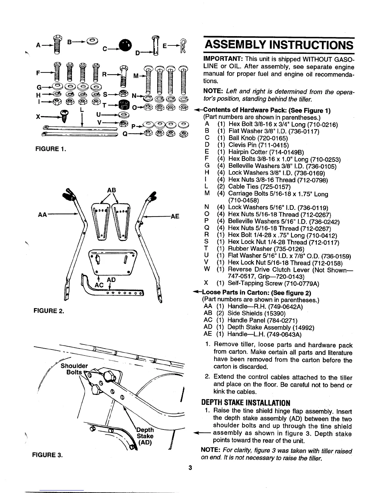 MTD 406 - Assembly; Contents of Hardware Pack; Depth Stake Installation; Loose Parts in Carton