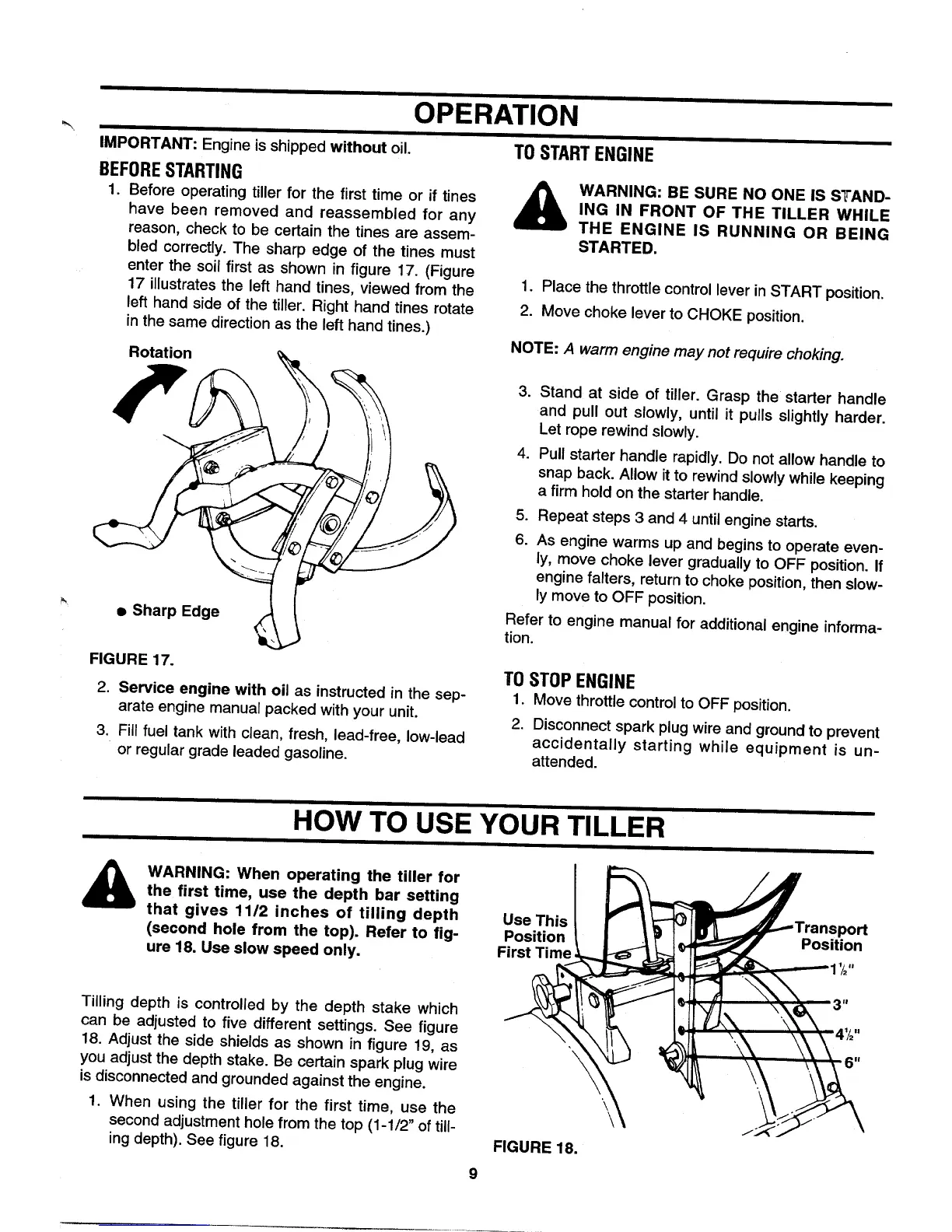MTD 406 - Operation; How to Use Your Tiller; Before Starting; To Start Engine
