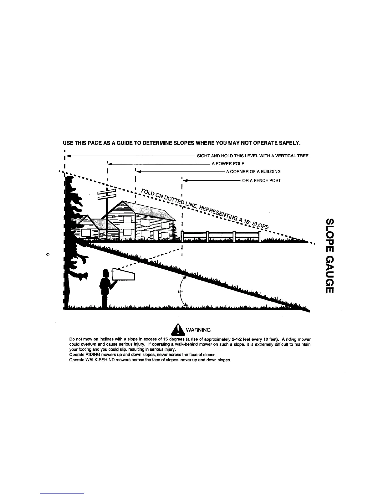 USE THIS PAGE AS A GUIDE TO DETERMINE SLOPES WHERE YOU MAY NOT OPERATE SAFELY.