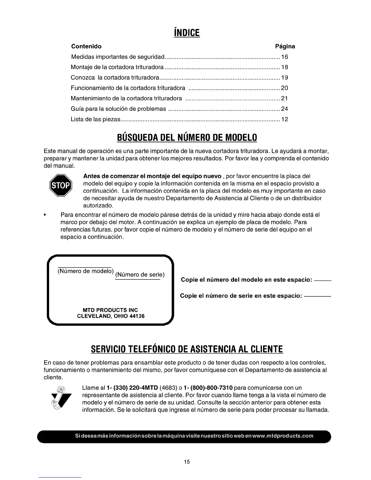 Llame al 1- (330) 220-4MTD (4683) o 1- (800)-800-7310 para comunicarse con un