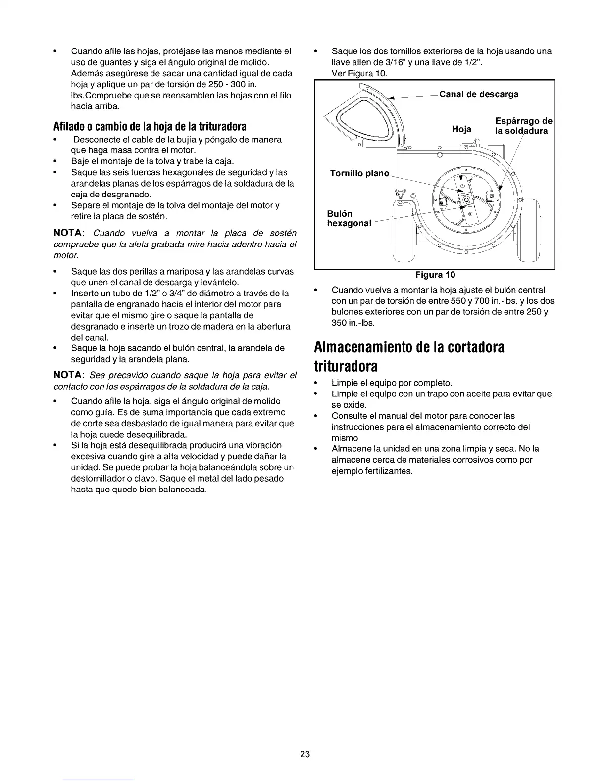 Afiladoo cambiodela hojadela trituradora