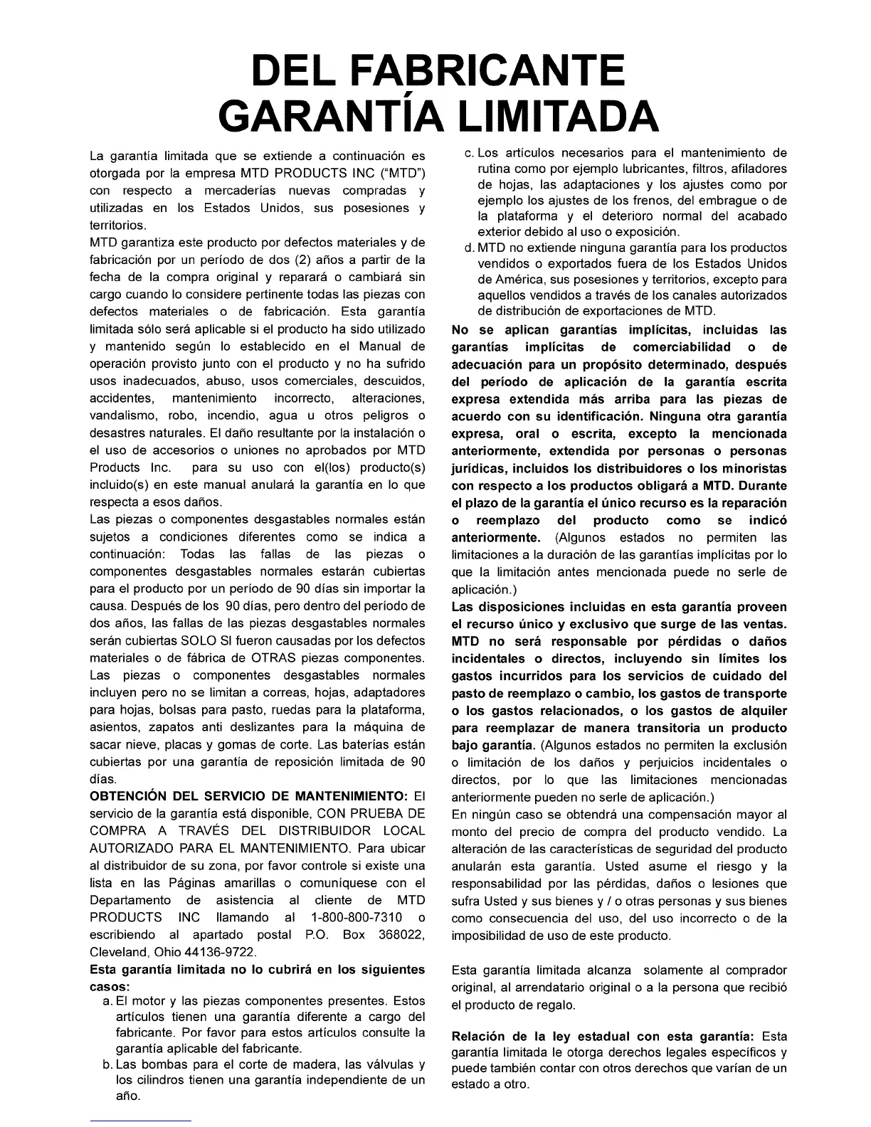 otorgada por la empresa MTD PRODUCTS INC ("MTD")