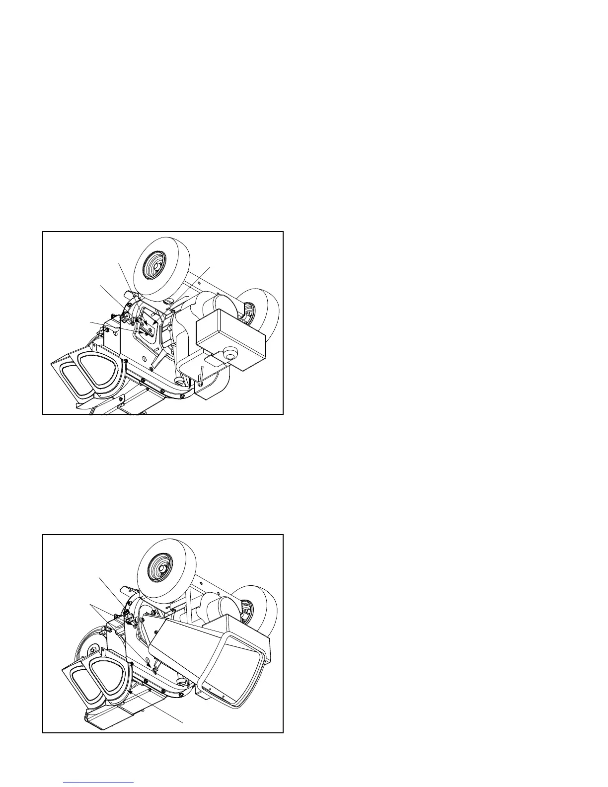 chaque côté de la goulotte d’éjection (ou déflecteur