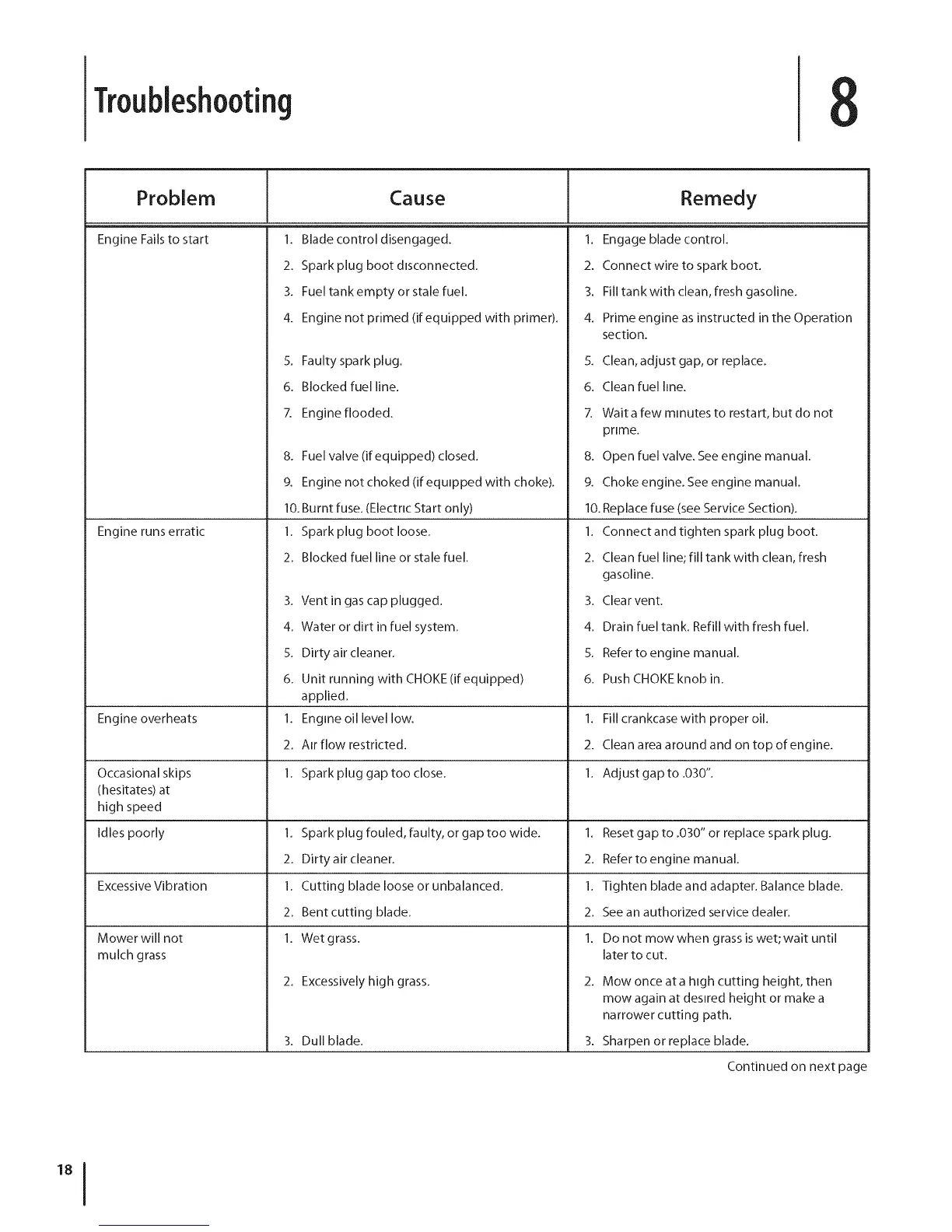Excessive Vibration Cutting blade loose or unbalanced. 1.