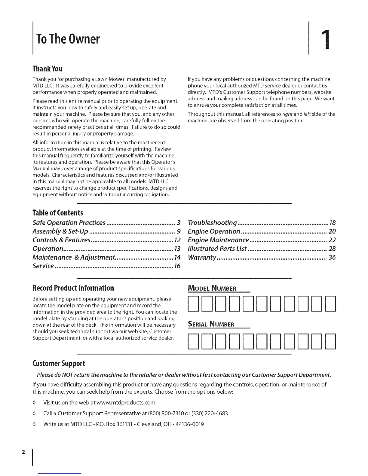Please do NOT return the machine to the retailer or dealer without first contacting our Customer Support Department.