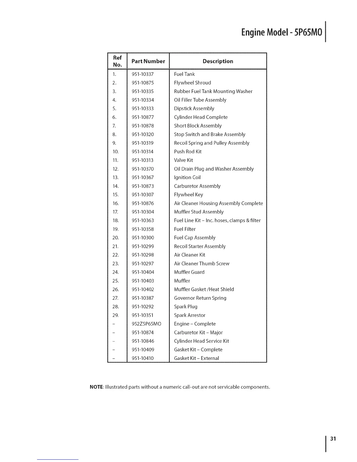 NOTE: Illustrated parts without a numeric call-out are not servicable components.