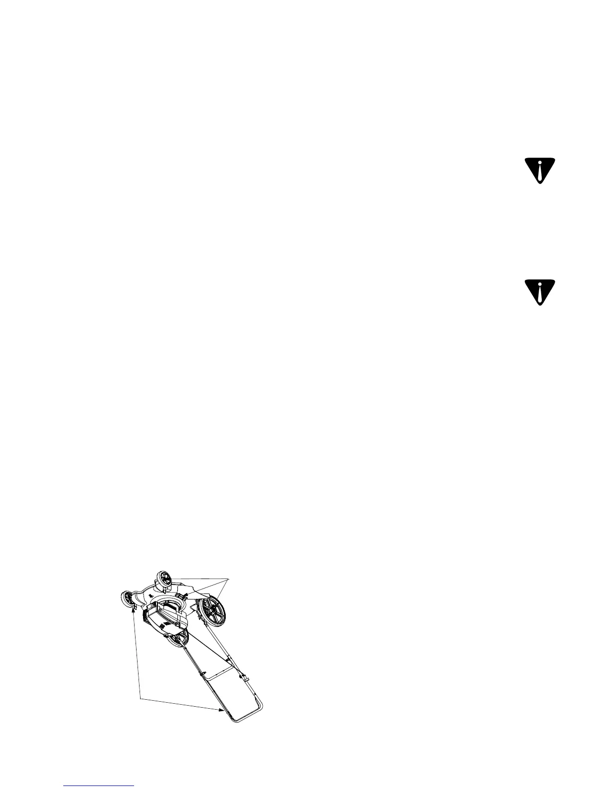 AVERTISSEMENT: N’inclinez pas la tondeuse à plus de 90º dans un sens ou dans l’autre et ne laissez