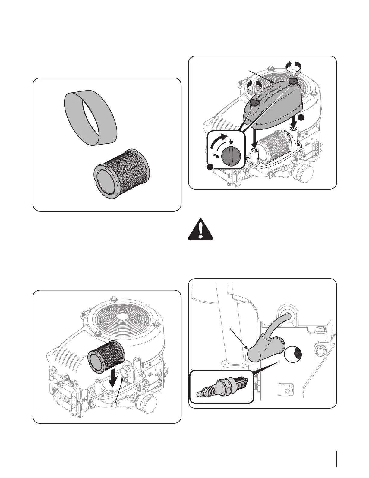 7. Coloque la tapa del filtro de aire. Vea la Figura 6-8. Gire