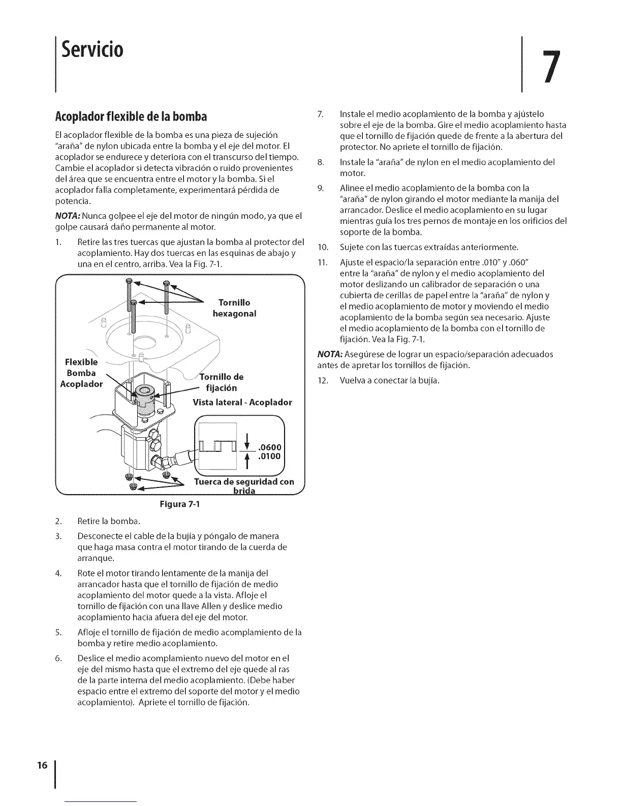 acoplamiento de la bomba segun sea necesario. Ajuste