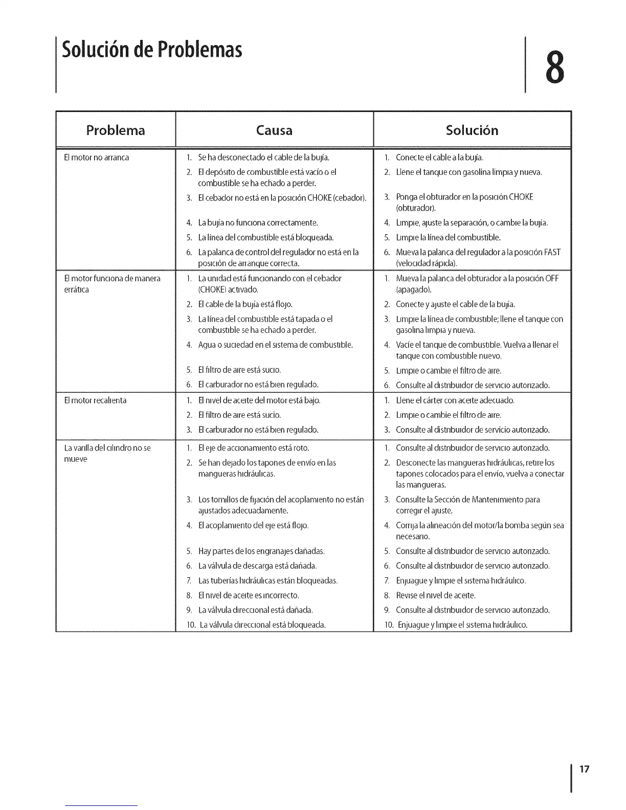 4. Dmpie, ajuste la separaci6n, o camble la bujia.
