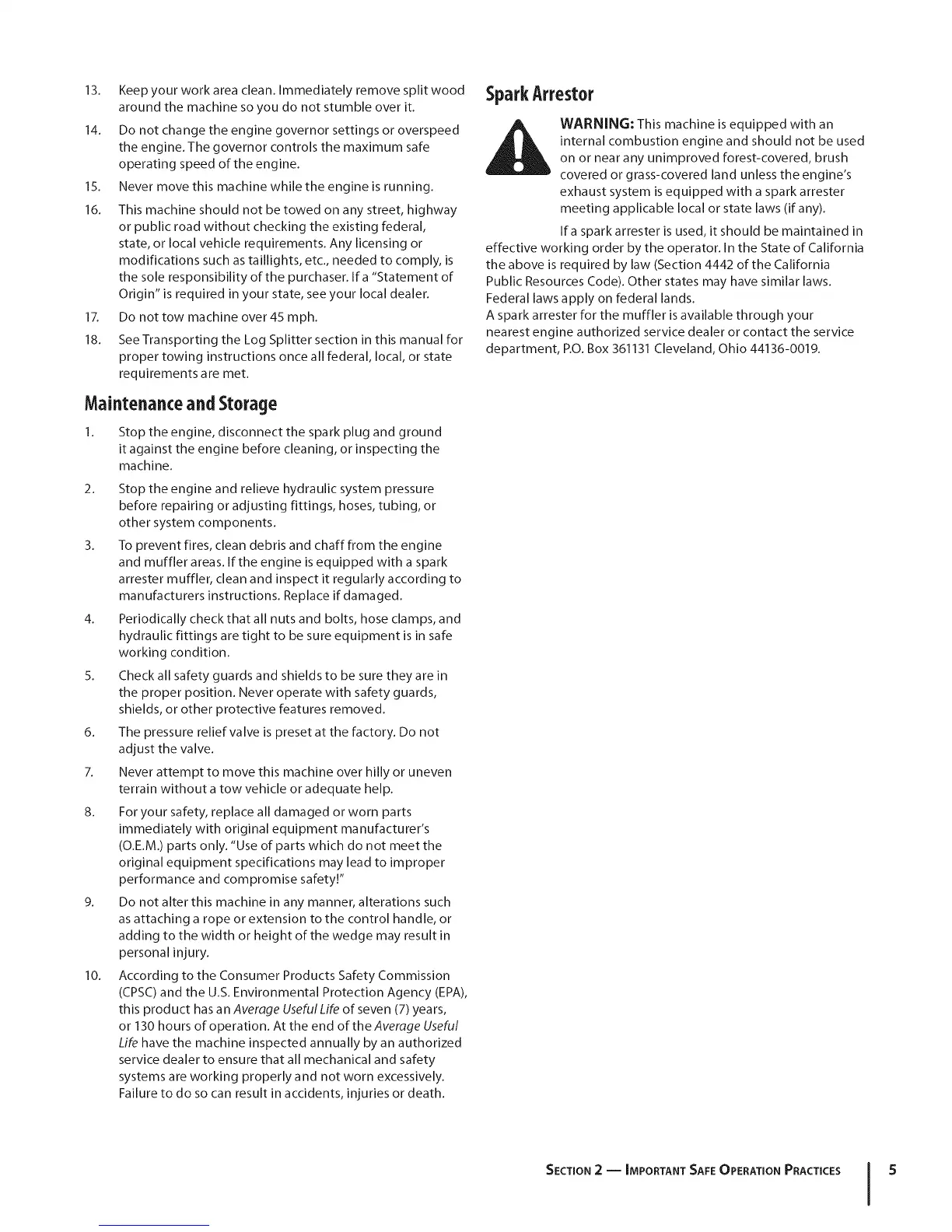 SECTION 2 -- IMPORTANT SAFE OPERATION PRACTICES S