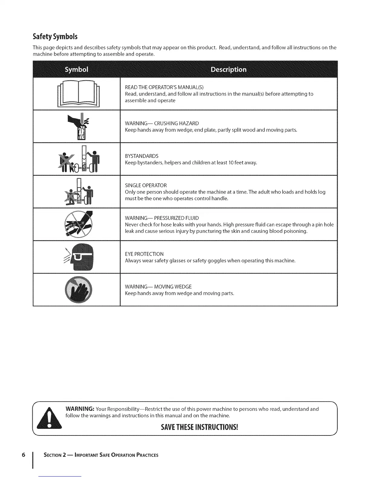 WARNING: Your Responsibility--Restrict the use of this power machine to persons who read, understand and