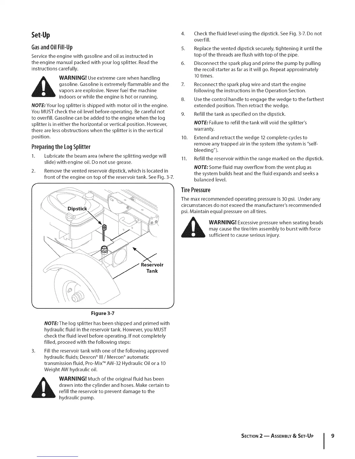 NOTE: Your log splitter is shipped with motor oil in the engine.