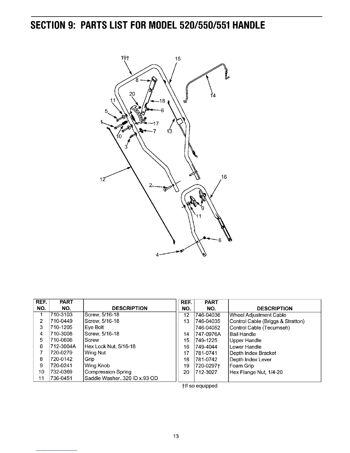 SECTION9: PARTSLISTFORMODEL520/550/551HANDLE