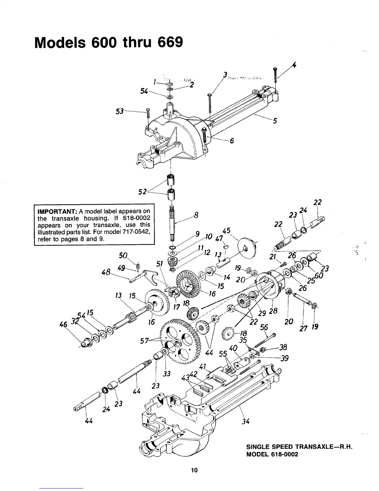 MTD 600-669 - Single Speed Transaxle Parts (Model 618-0002)