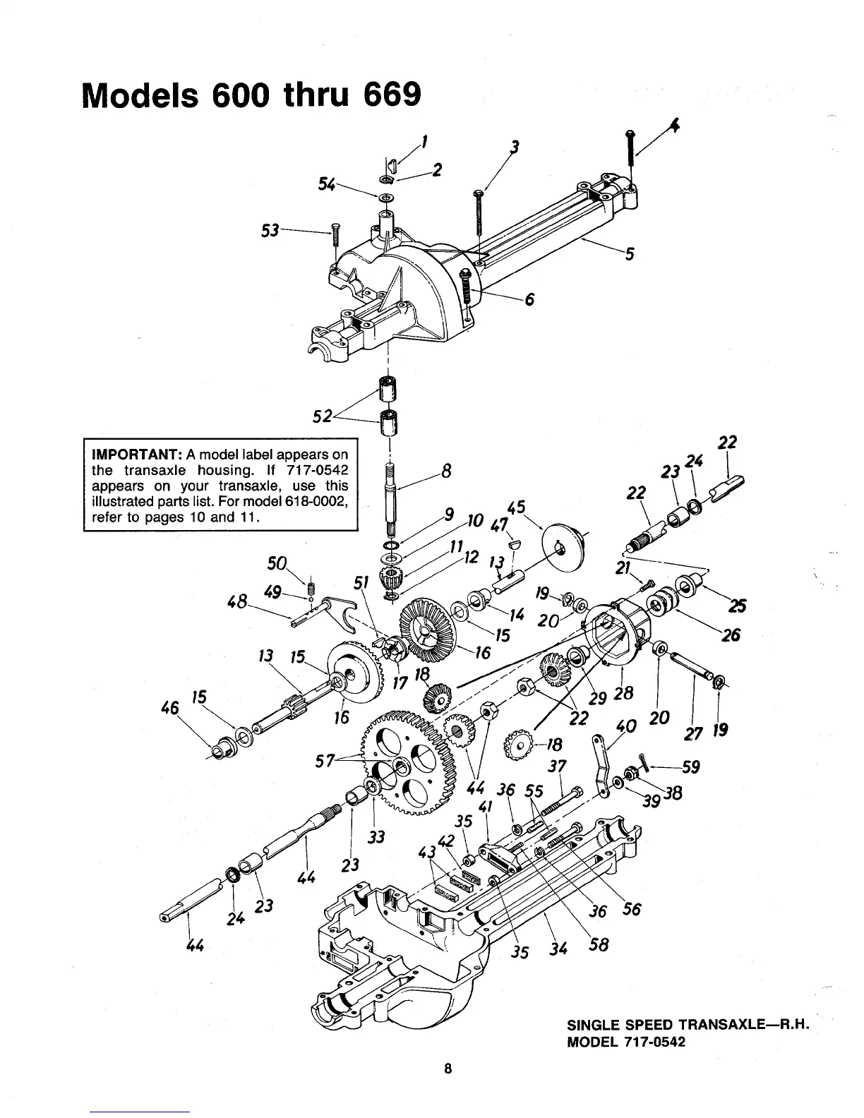 MTD 600-669 - Single Speed Transaxle Parts (Model 717-0542)