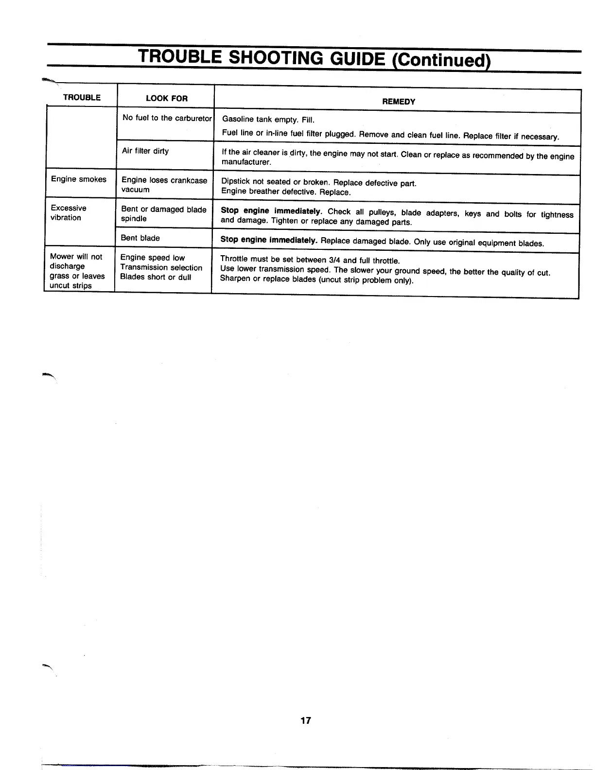 MTD 600-699 - TROUBLE SHOOTING CONTINUED; Fuel System and Engine Performance; Cutting and Discharge Problems