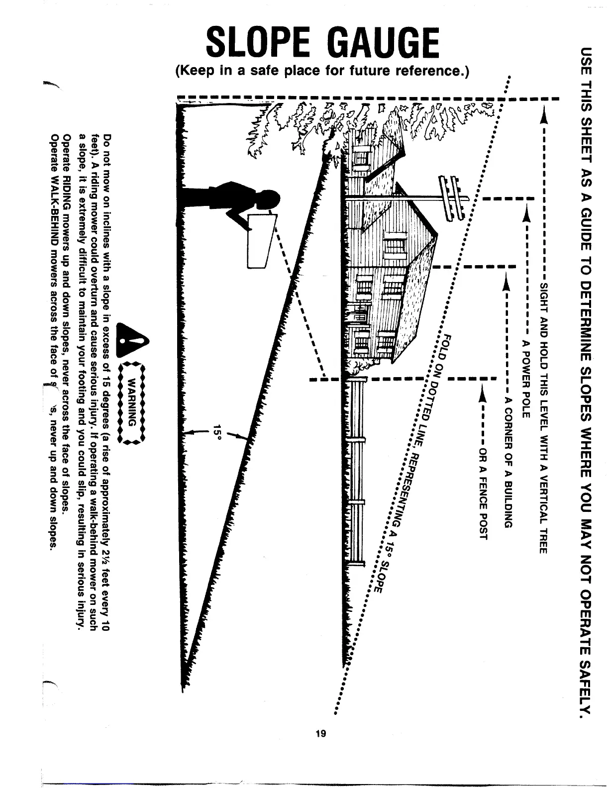 MTD 600-699 - SLOPE GAUGE GUIDE; Determining Safe Slope Angles; Safe Slope Operation Practices