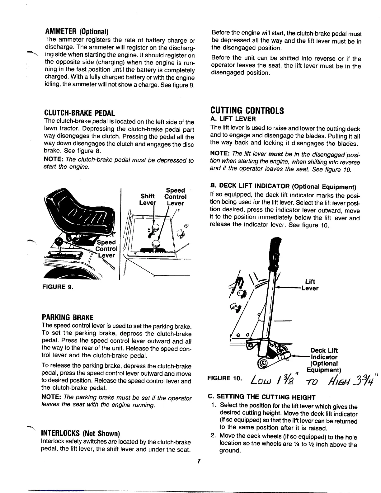 MTD 600-699 - OPERATOR CONTROLS AND ADJUSTMENTS; Cutting Controls and Height Setting