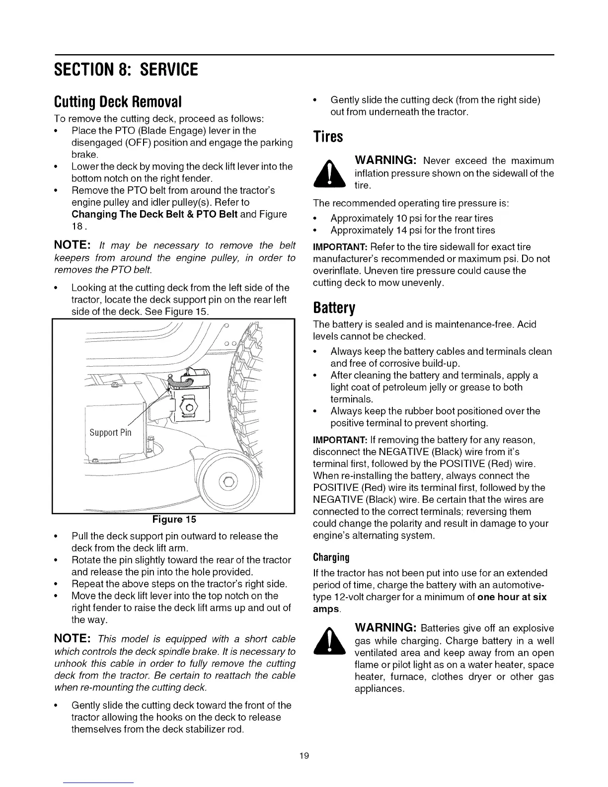 deck from the tractor. Be certain to reattach the cable
