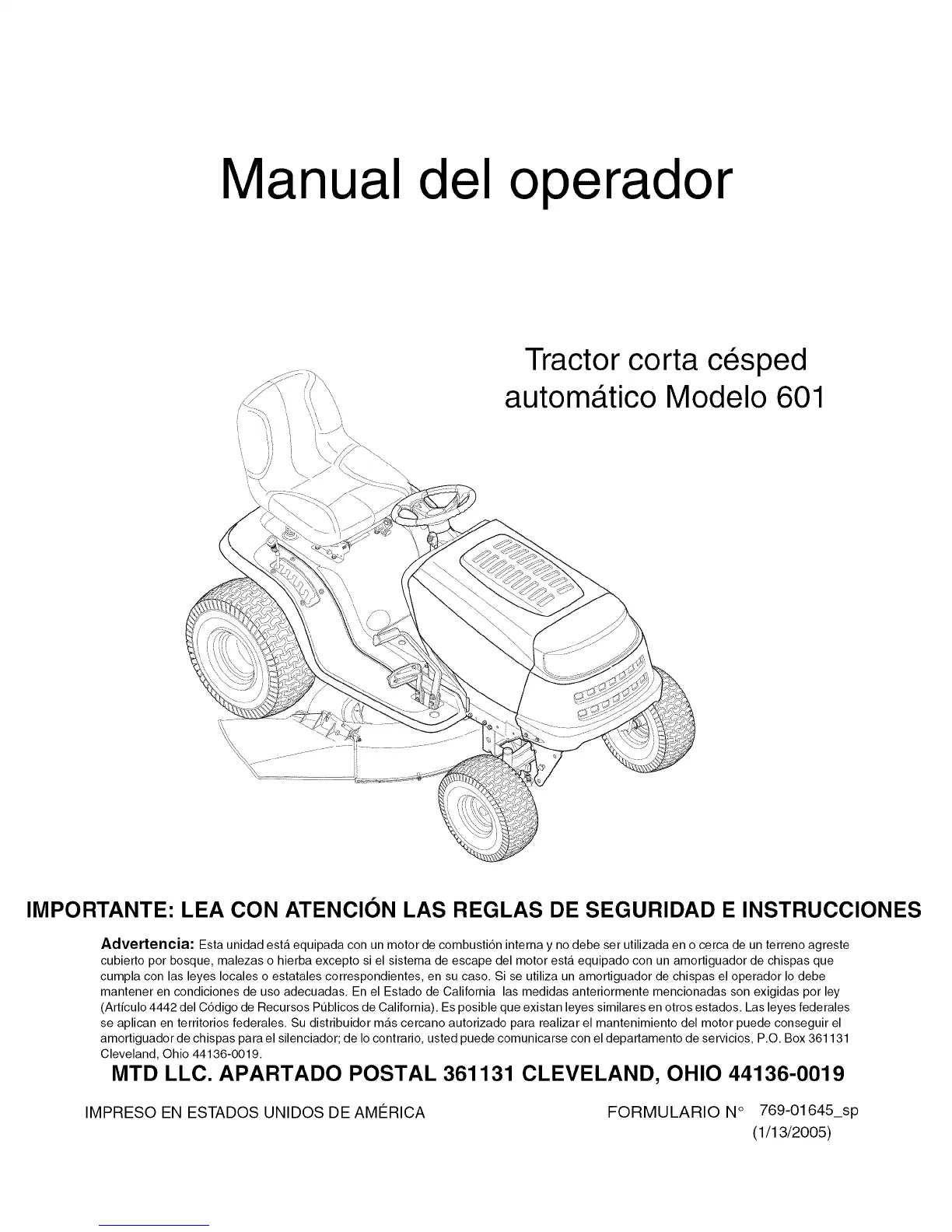 MTD LLC. APARTADO POSTAL 361131 CLEVELAND, OHIO 44136-0019