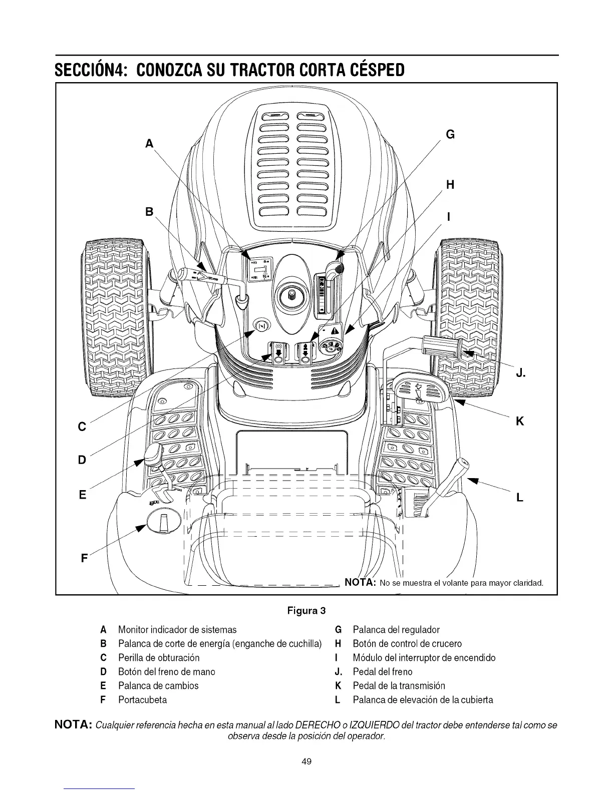 NOTA: Cualquier referencia hecha en esta manual al lado DERECHO o IZQUIERDO del tractor debe entenderse talcomo se