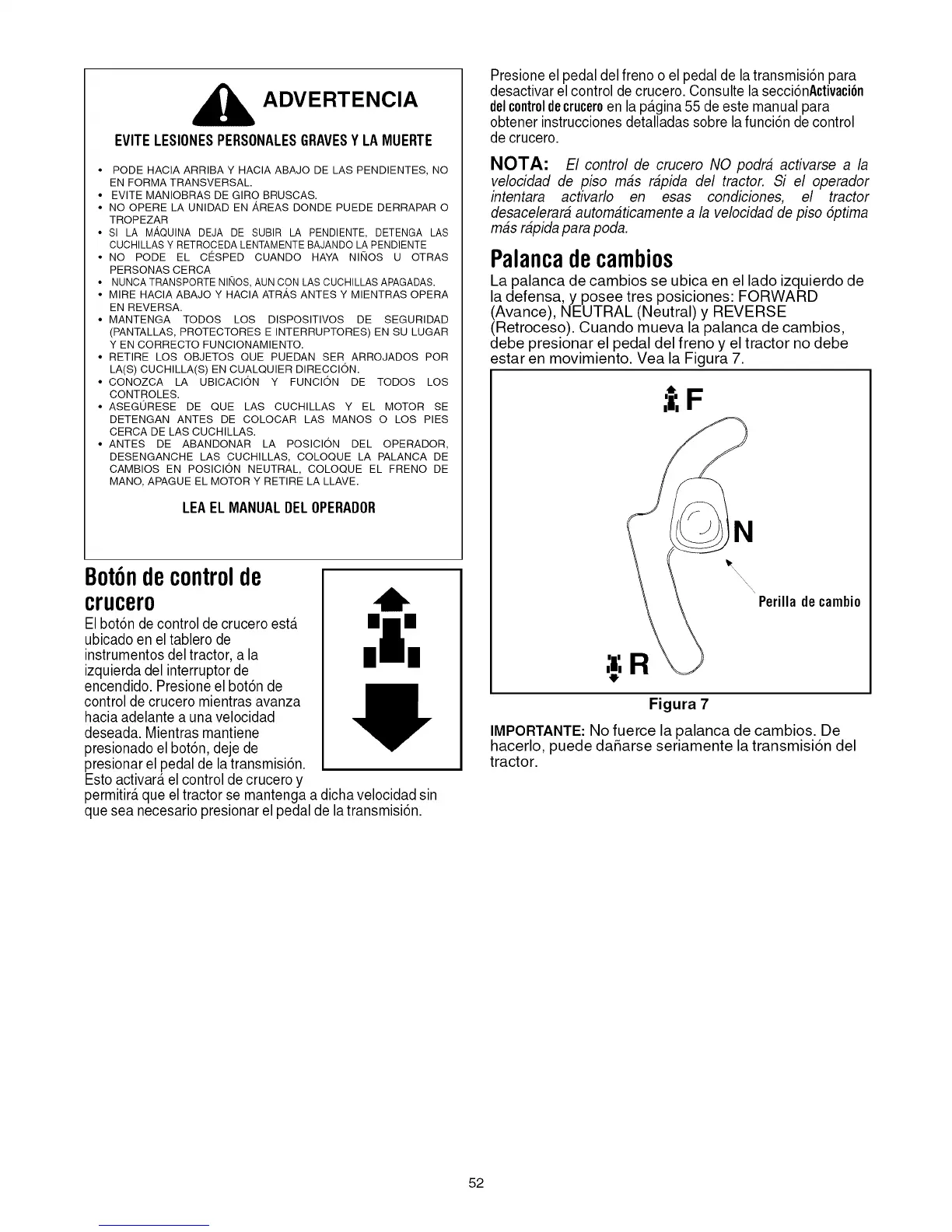 • NUNCA TRANSPORTE NINOS, AUN CON LAS CUCHILLAS APAGADAS.