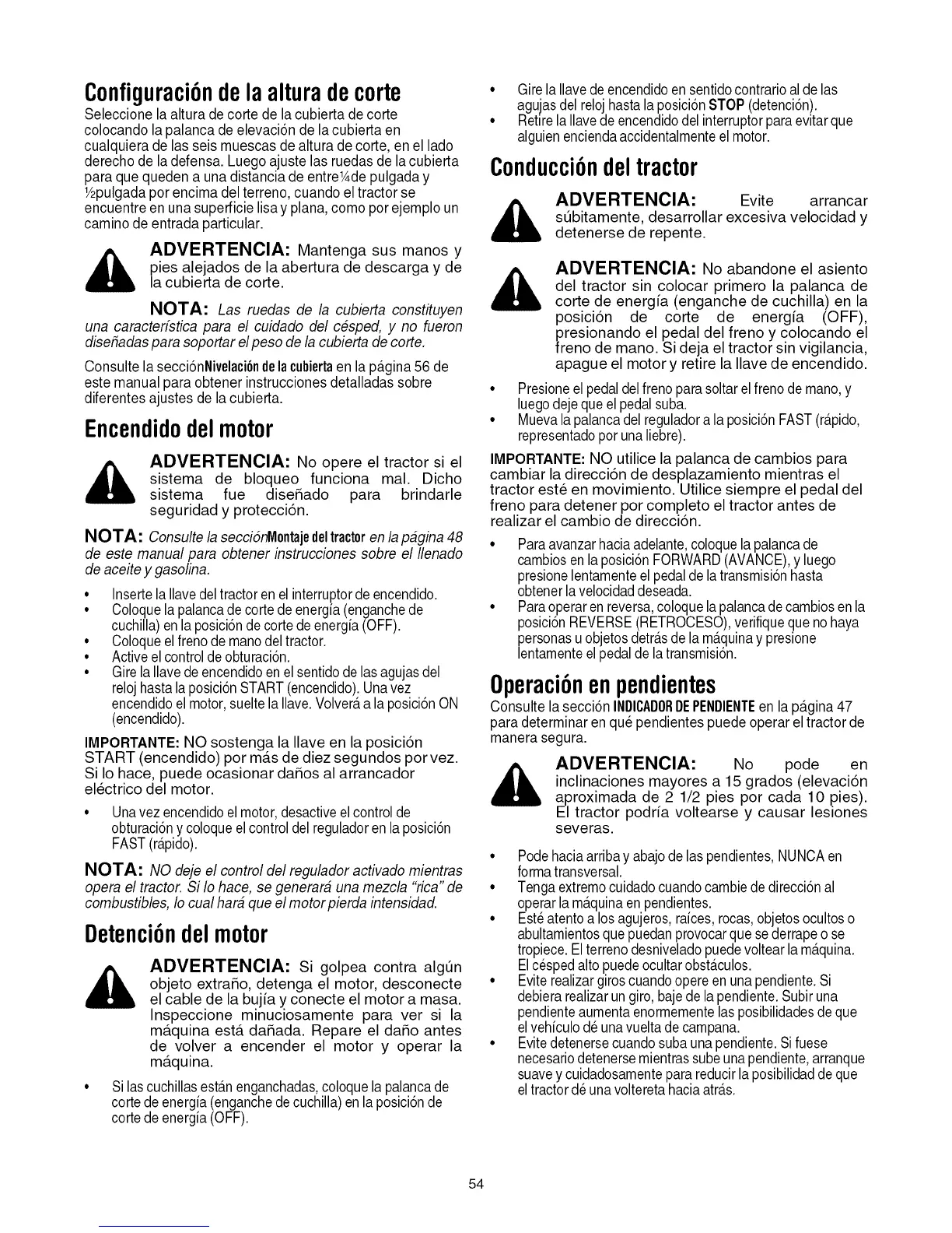 ,_ ADVERTENClA: Evite arrancar