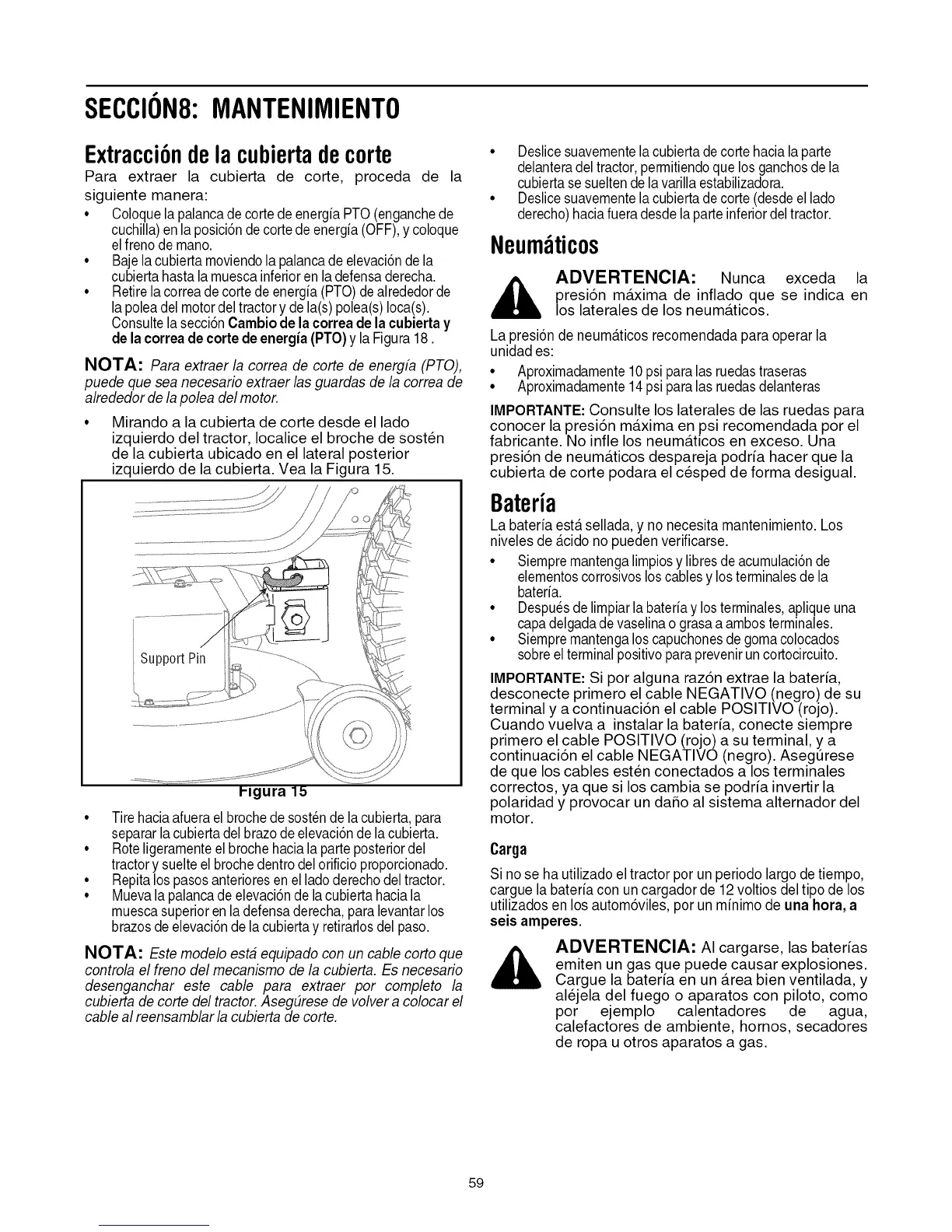 cubierta de corte del tractor.Aseg#rese de volvera colocar el