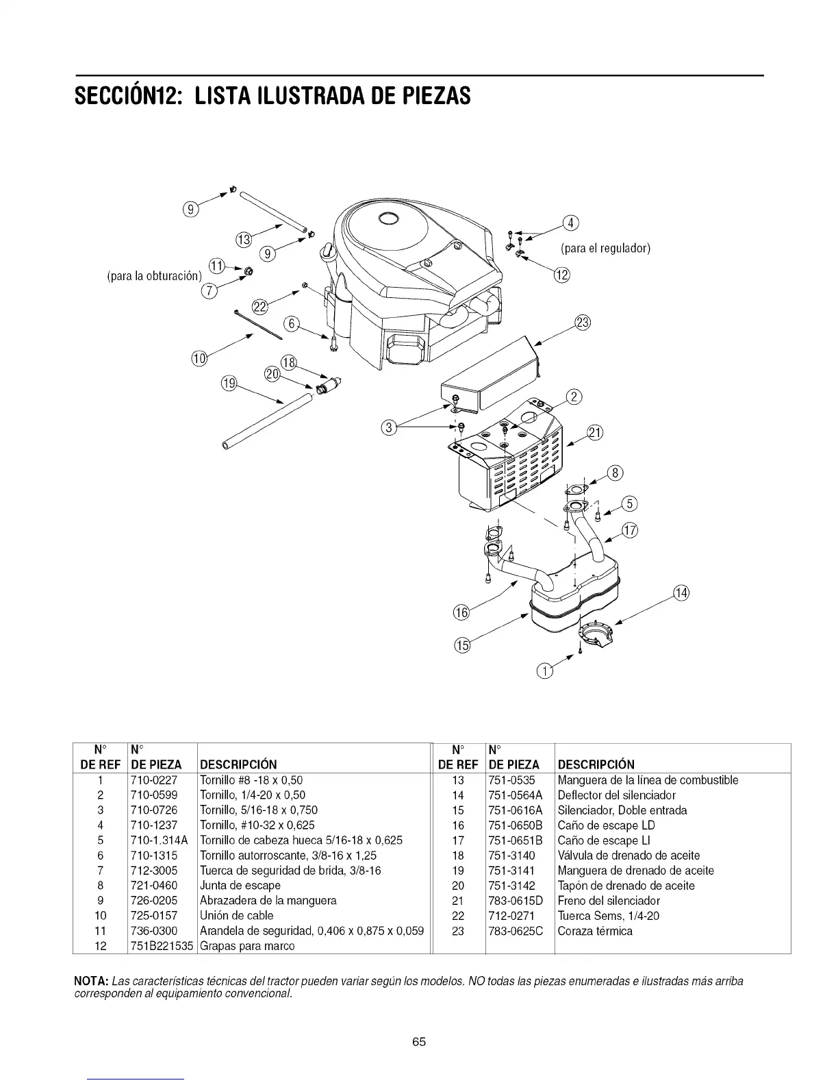 NOTA: Las caractedsticas tecnicas del tractorpueden variarseg_n los modelos. NO todas las piezas enumeradas e ilustradas mas arriba