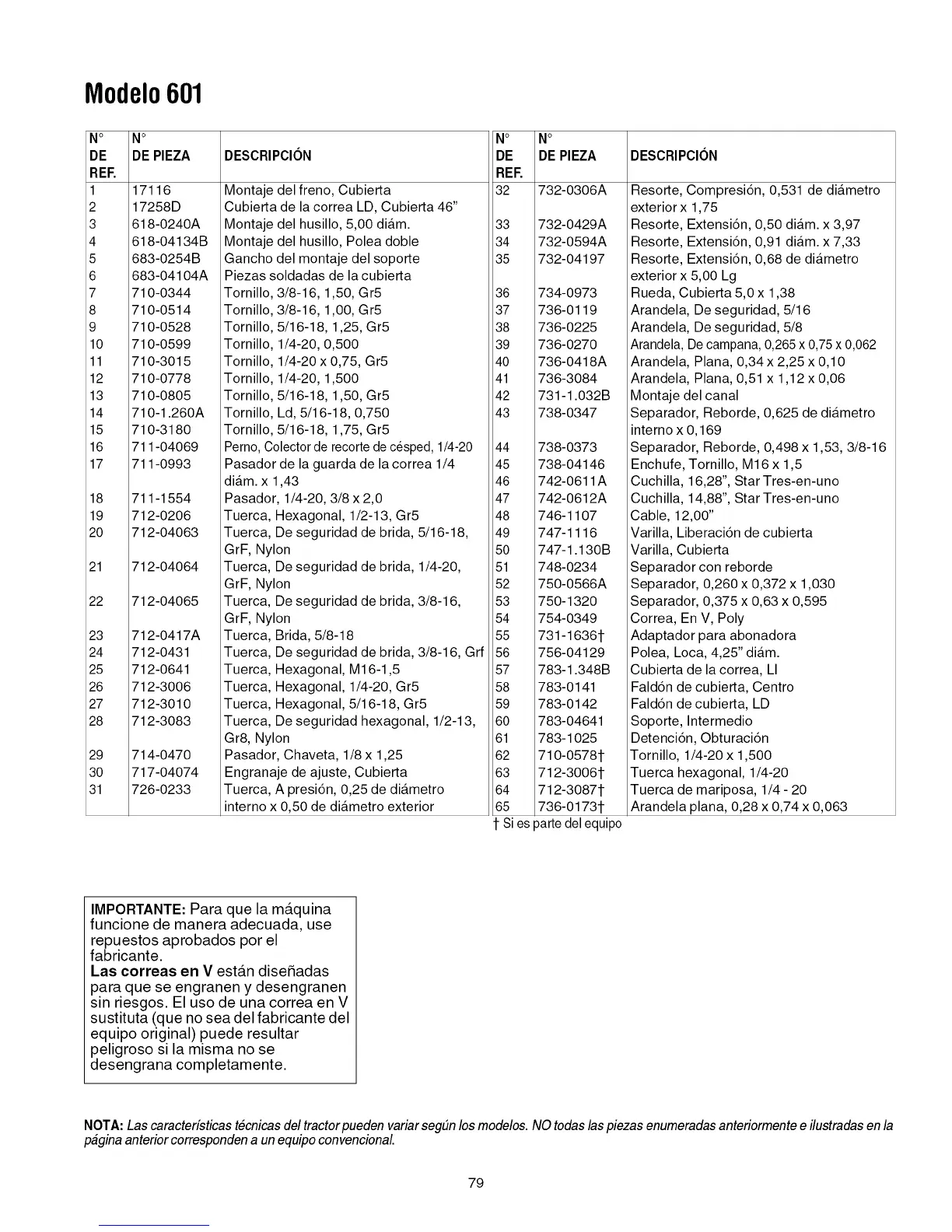 NOTA: Las caracterfsticas tecnicas del tractorpueden variarsegEmlos modelos. NO todas las piezas enumeradasanteriormente e ilustradas en la