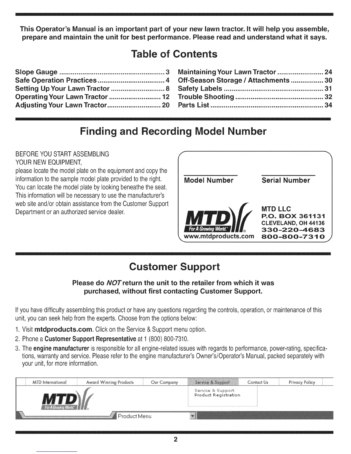 1. Visit mtdproducts.com. Click on the Service & Support menu option.