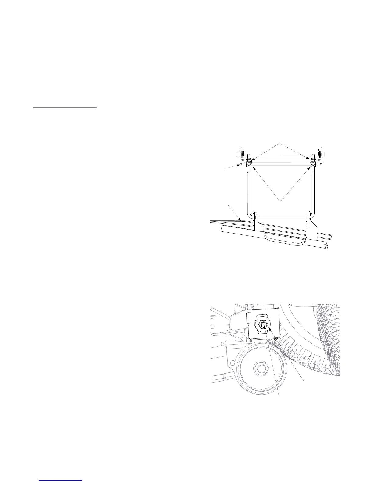 NOTE: Check the tractor’s tire pressure before performing any deck leveling adjustments. Refer to Tires later in this