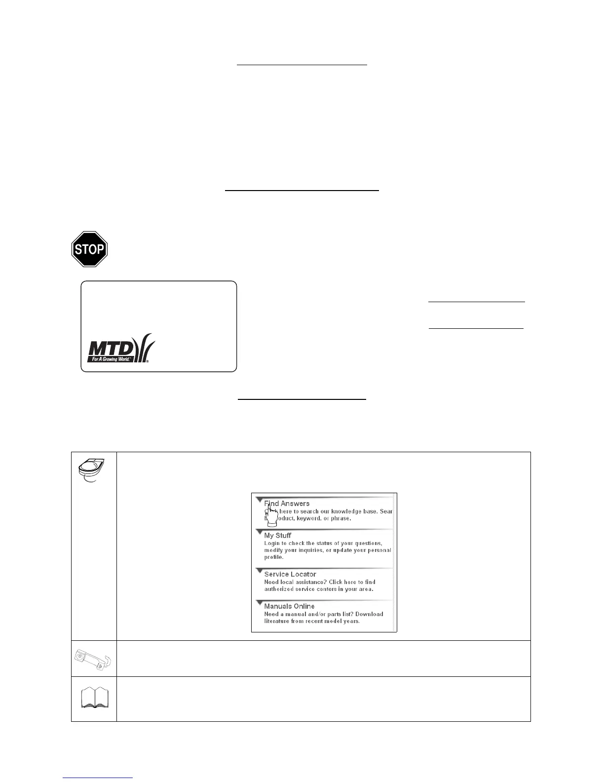 Visit mtdproducts.com for many useful suggestions. Click on Customer Support button and