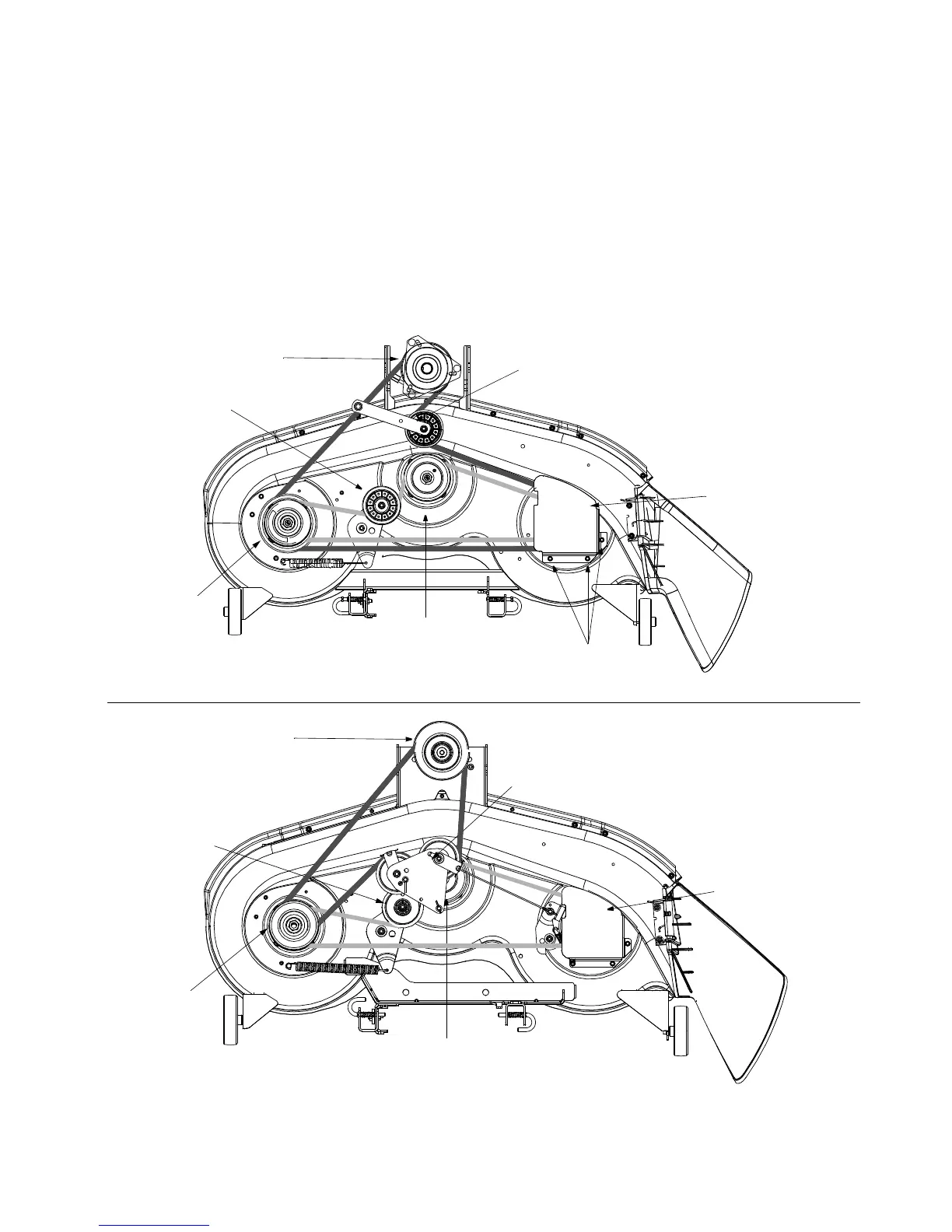 2. Take the belt guards off by removing the self-tapping screws that fasten them to the deck surface. See Figure