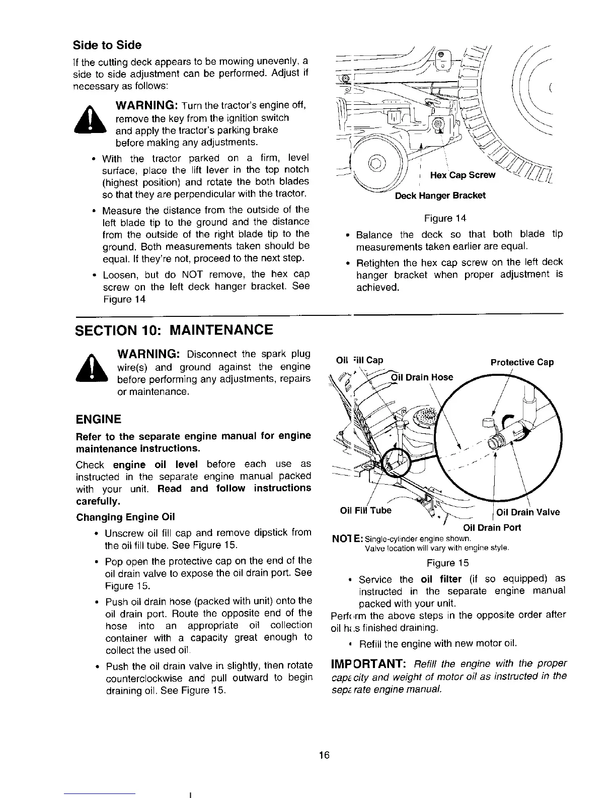 MTD 617 - Tractor Maintenance; Engine Maintenance; Changing Engine Oil