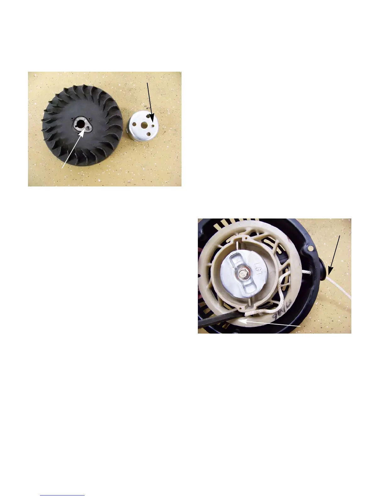 starter cord knot and pulling the rope out with it.