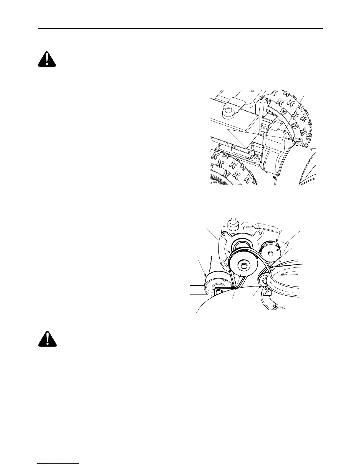 • Replace both auger drive belts by following